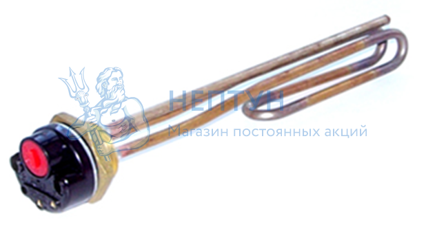 ТЭН в форме обратной гибки, выполнен в медной оболочке на латунном фланце с диаметром резьбы G1¼ (42мм.), используется для нагрева воды, комплектуется терморегулятором. ТЭН применяется для установки в различные емкости и последующего нагрева жидкости.