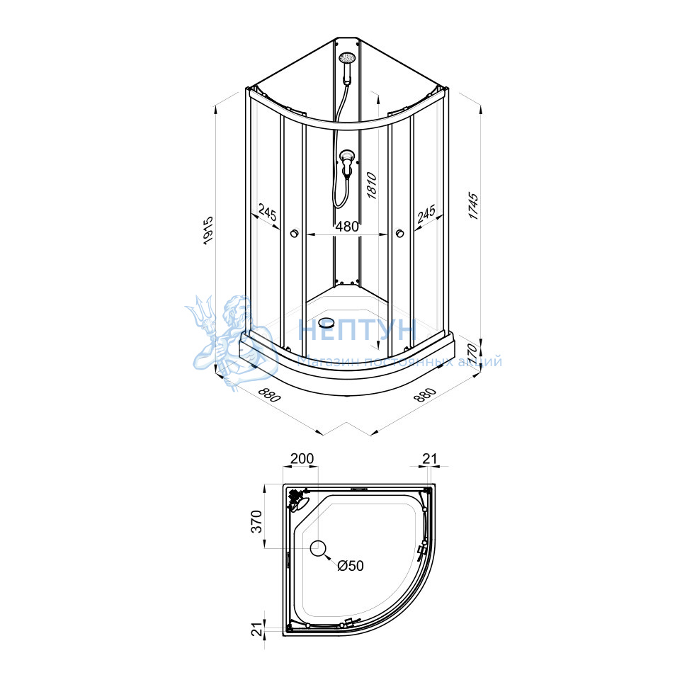 - Душевая кабина Экстра 88x88 А (для ДН1 без крыши) Triton