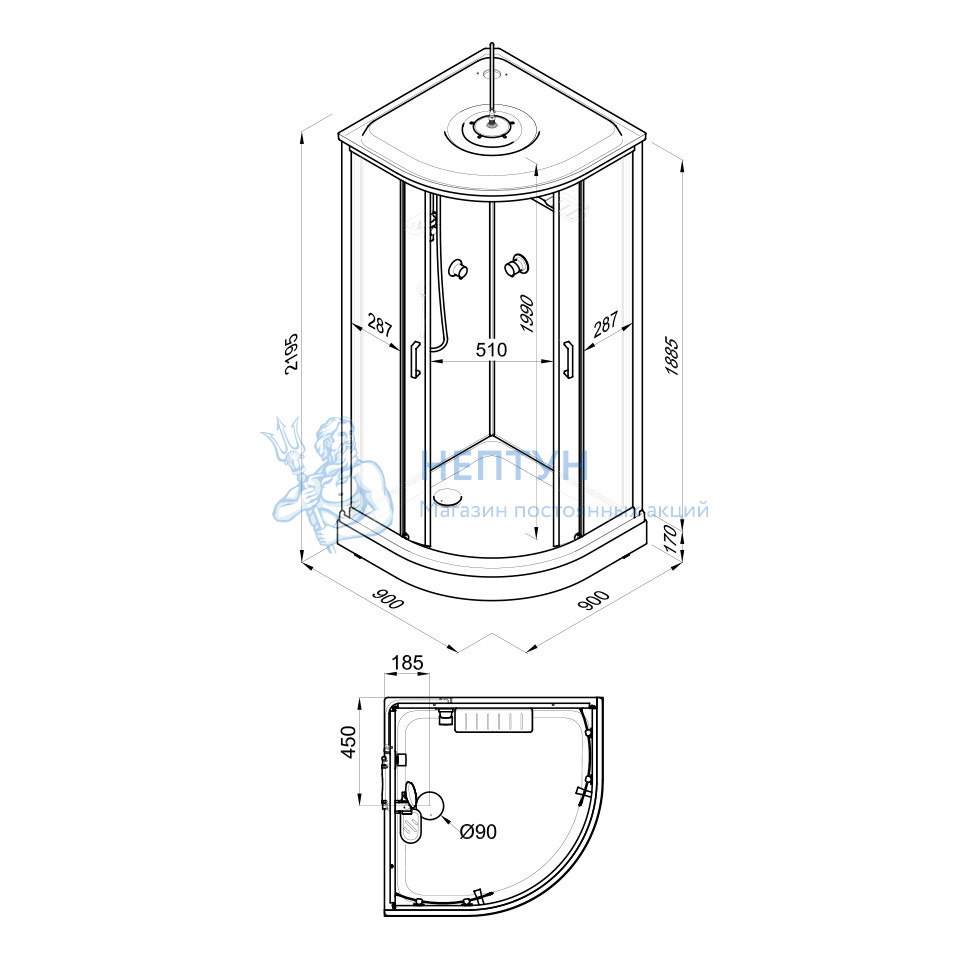 - Душевая кабина Прайм-Сатин (Вельвет) М3 90x90А Triton