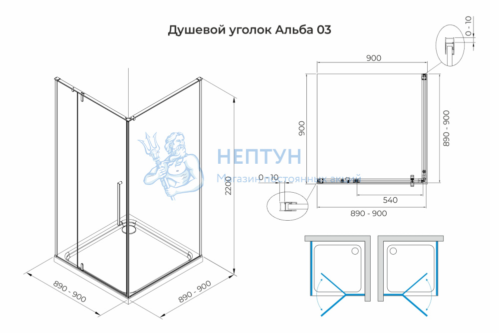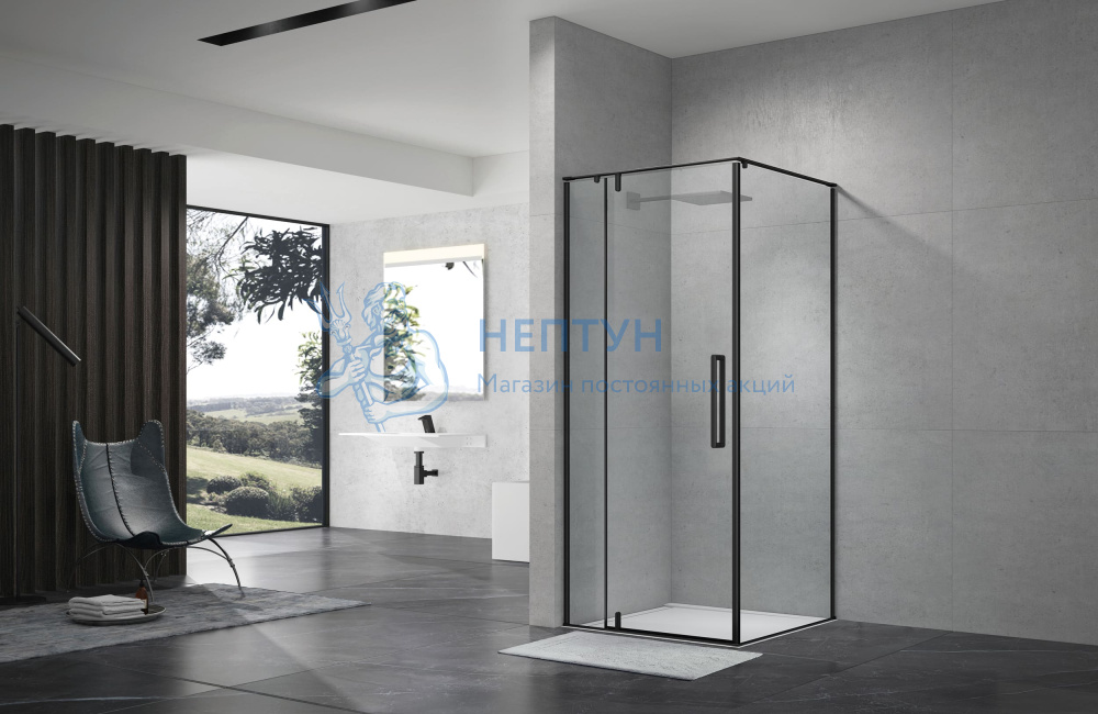 - Душевой уголок распашной Terminus Альба 03 900х900х2200 квадрат чёрный 3EW90х90B