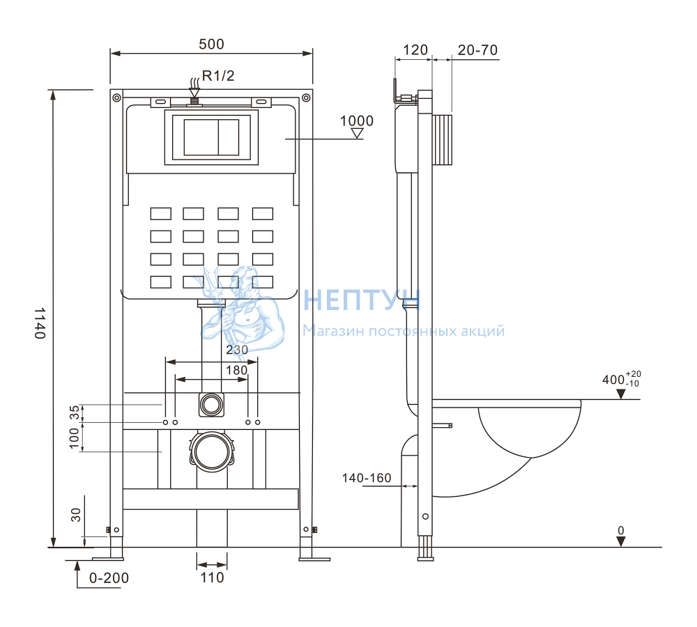 - Инсталляция ABBER AC0105 для подвесного унитаза