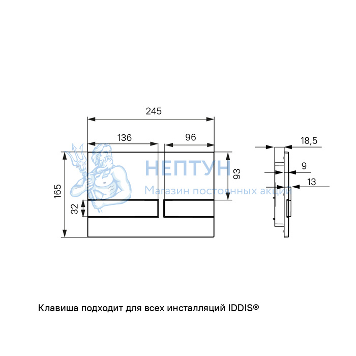 - Клавиша смыва, универсальная, чёрная, Unifix, 006, Iddis, UNI06MBi77