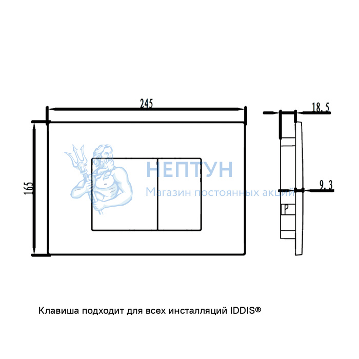 - Клавиша смыва, универсальная, матовая белая, Unifix, 032, Iddis, UNI32MWi77