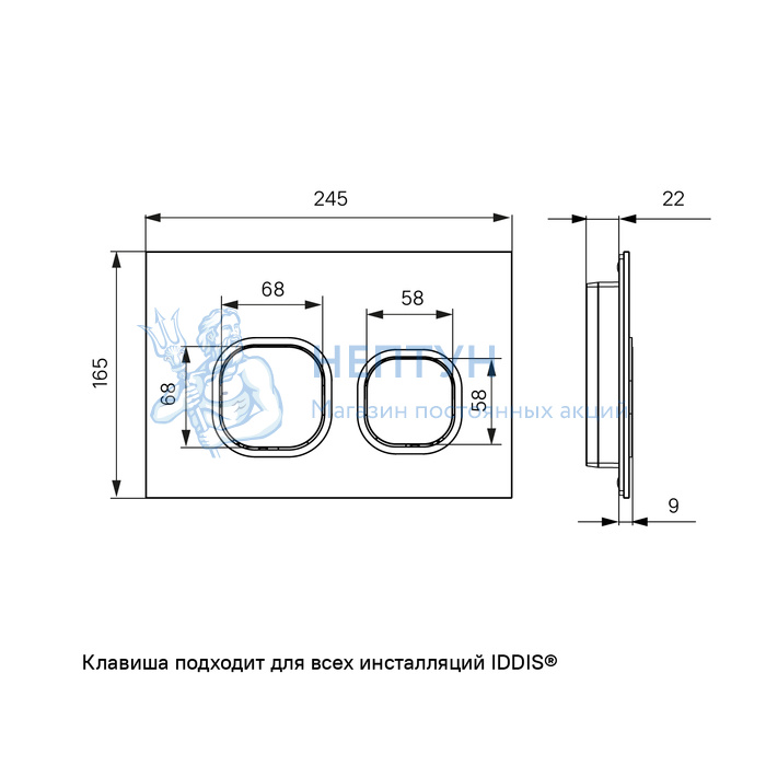 - Клавиша смыва, универсальная, матовая белая, Unifix, 040, Iddis, UNI40MWi77