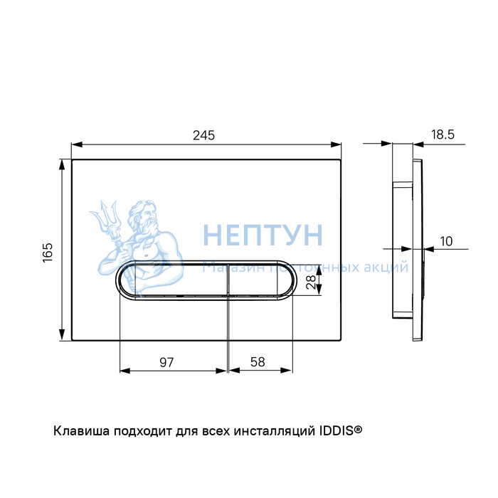 - Клавиша смыва, универсальная, матовая черная, Unifix, 071, Iddis, UNI71MBi77
