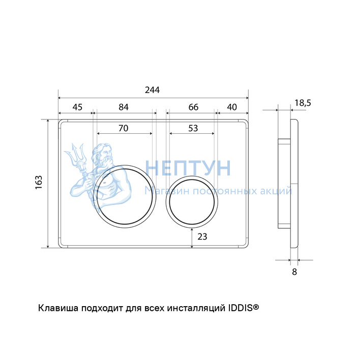 - Клавиша смыва, универсальная, матовый хром, Unifix, 050, Iddis, UNI50M0i77