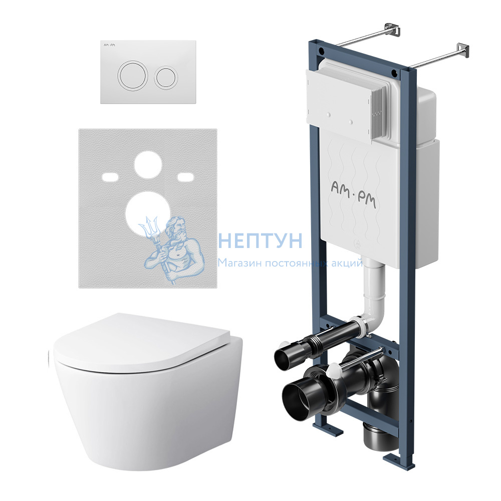 - Инсталляция Am.Pm Sense ErgoFit с подвесным унитазом FlashClean с сиденьем микролифт и клавишей IS110101.741701