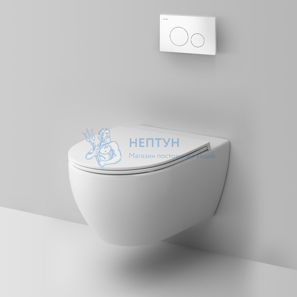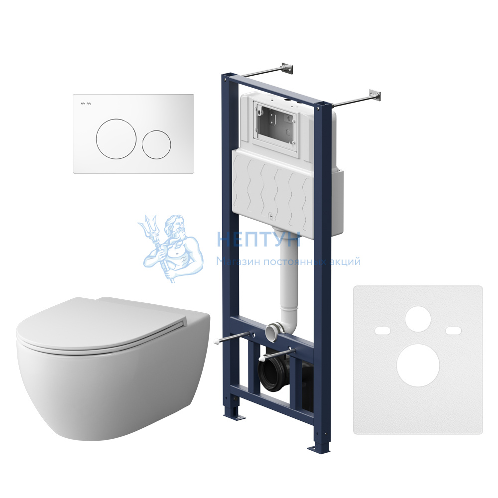 - Комплект инсталляция с белой клавишей+безободковый унитаз с сиденьем микролифт IS49001.111700