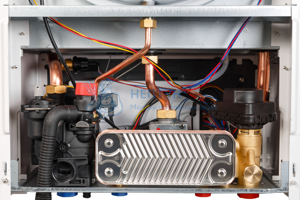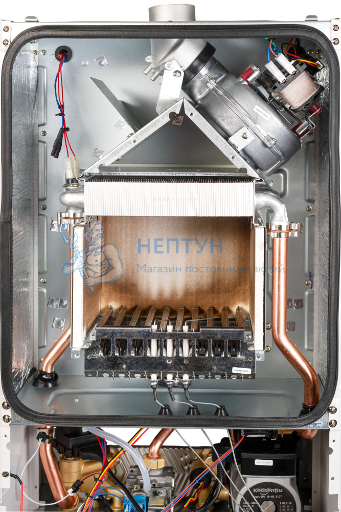 - Вторичный теплообменник из нержавеющей стали увеличенного объема.