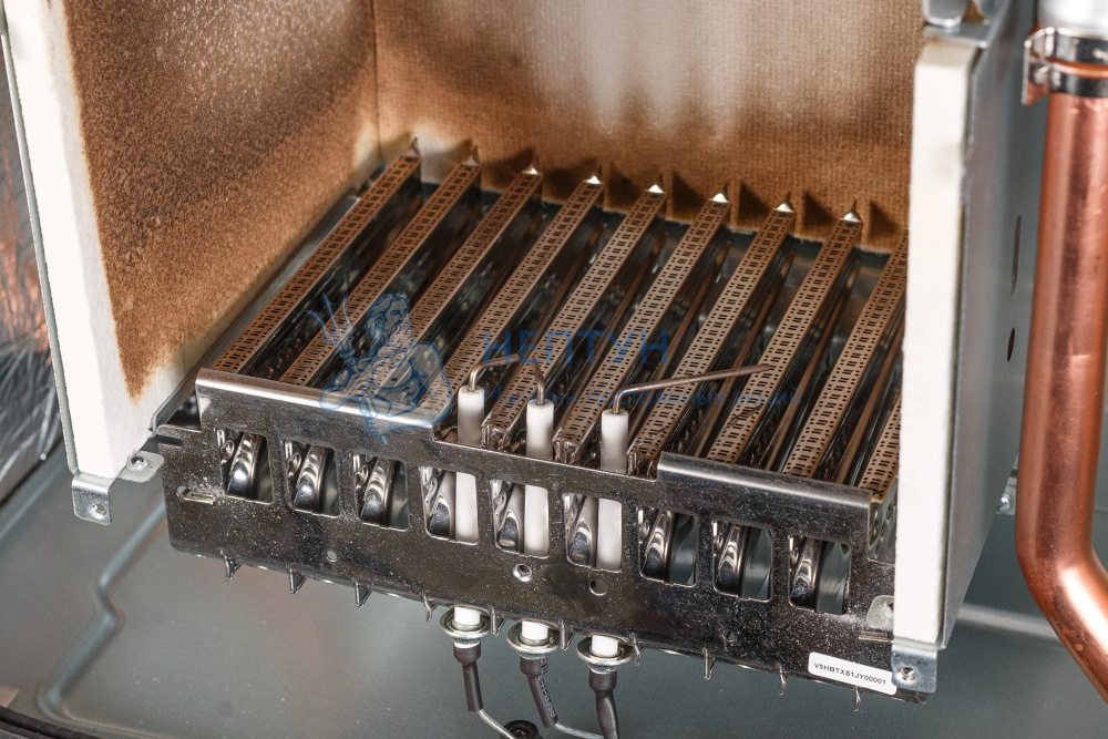 - Модулирующий газовый клапан, два зажигающих и один ионизационный электроды