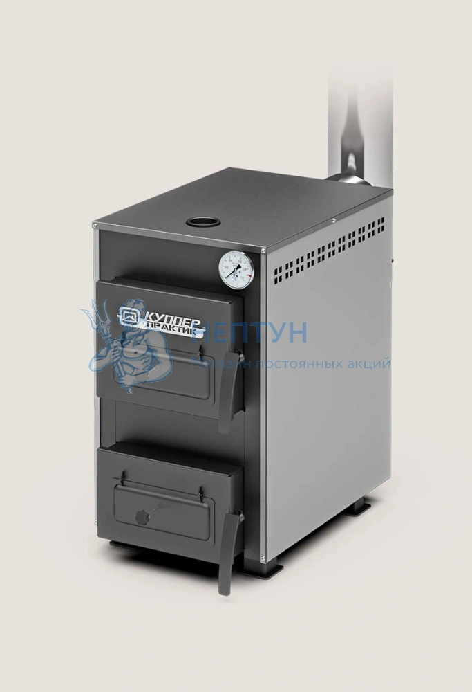 В базовую комплектацию котла Куппер Практик входит: кочерга, шуровка, термометр, поворотный шибер.