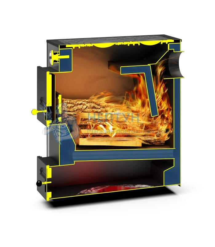 - Возможность установки автоматического регулятора тяги для управления интенсивностью горения.