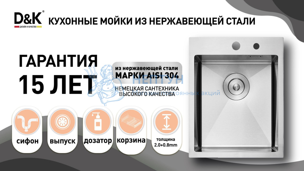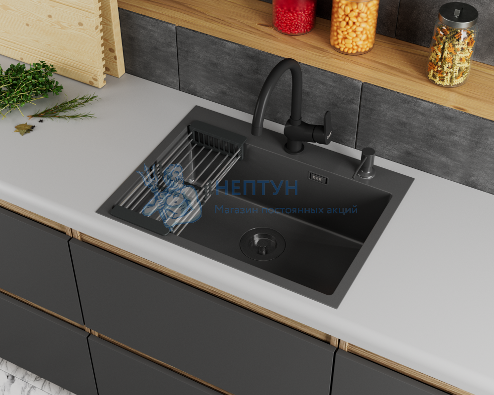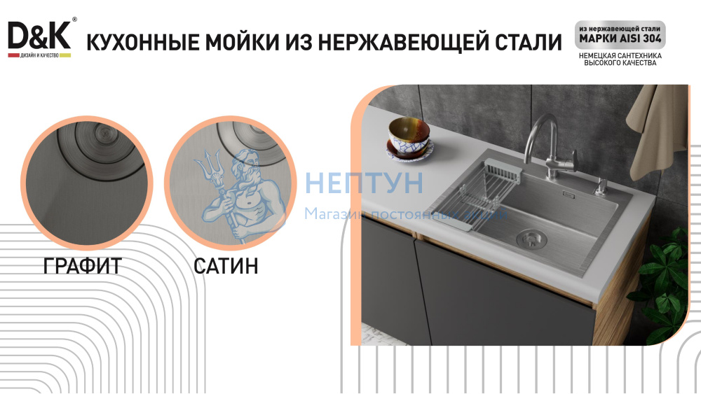 - Кухонная мойка нерж.сталь графит D&K DKS604506, в комплекте с сифоном, корзиной, дозатором