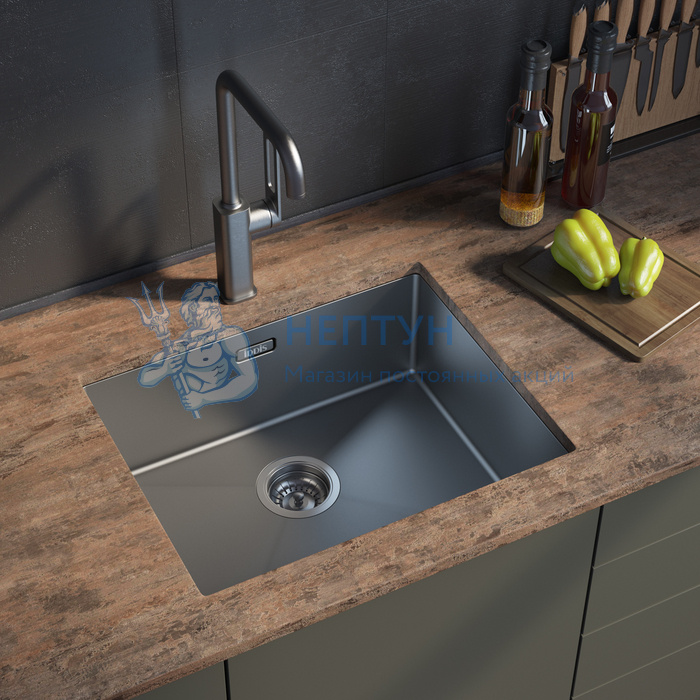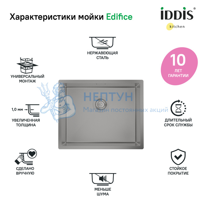 - Мойка нерж.сталь, универсального монтажа, графит, 540*440, Edifice, Iddis EDI54G0i77
