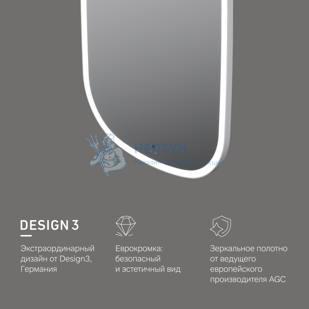 Внимание! Стоимость акционных товаров является окончательной, и не суммируется с другими акциями и скидками!Зеркало изготовлено из зеркального полотна от ведущего европейского производителя зеркал AGC. Изделие имеет высокую степень защиты от попадания капель воды брызг. Край зеркального полотна обработан еврокромкой что обеспечивает надежную защиту от случайных порезов при контакте с изделием.