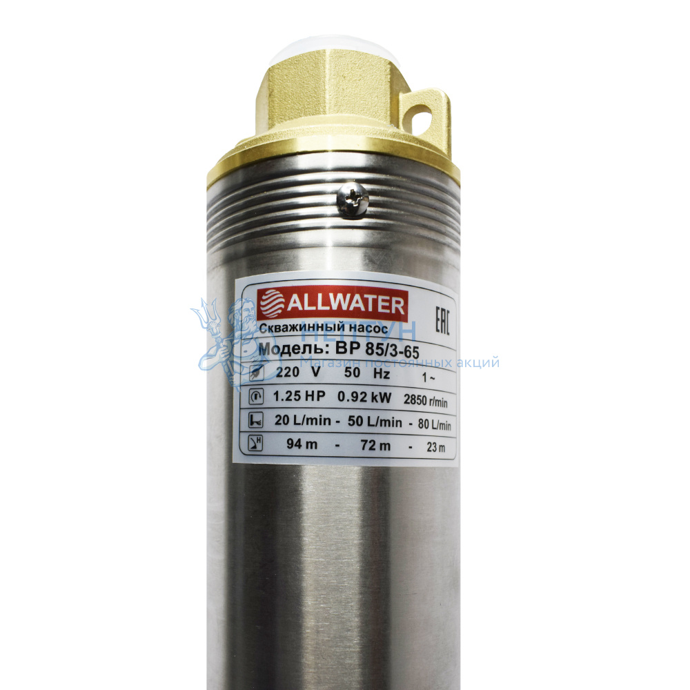 - Насос скважинный BP 85/3-65 Allwater (d-85mm, ном/макс 72-96м/3-0,6куб/ч) кабель 50м