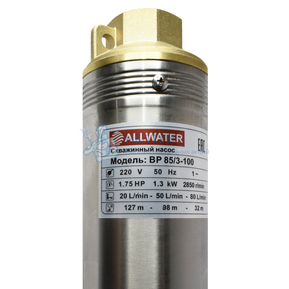 - Насос скважинный ВР 85/3-100 Allwater (d-85mm, ном/макс 98-129м/3-0,6куб/ч) кабель 50м