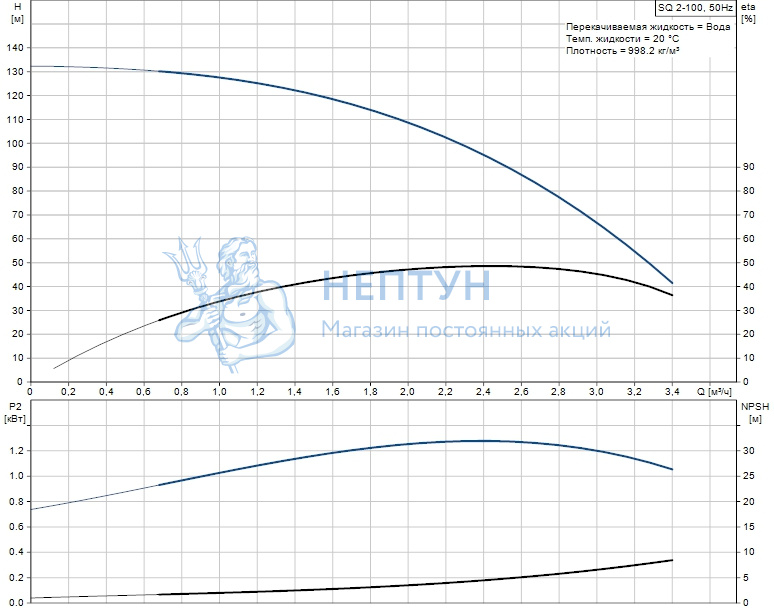 SQ 2-100 представляет собой компактный скважинный насос малого диаметра с высокой износостойкостью и встроенной защитой. Функция плавного пуска устраняет повреждения от воздействия гидроударов, а обратный клапан препятствует образованию обратного потока. Оптимальная конструкция из нержавеющей стали и антикоррозийных материалов в сочетании с низкими производственными затратами обеспечивают высокий КПД насоса и электродвигателя.