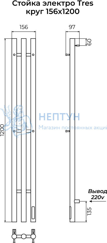 - Стойка электро TRES круг1200 Terminus нерж. 4670078561831