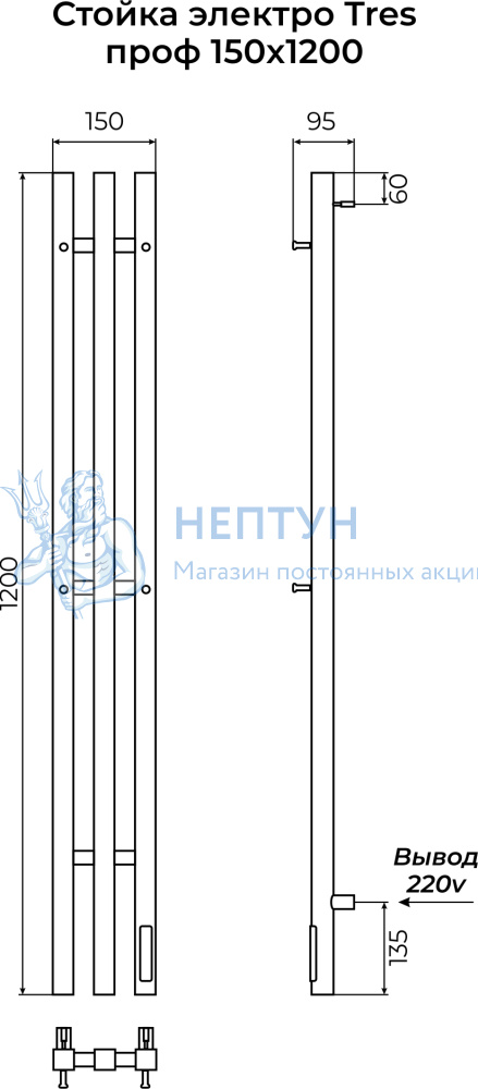- Стойка электро TRES проф1200 Terminus нерж. 4670078561848