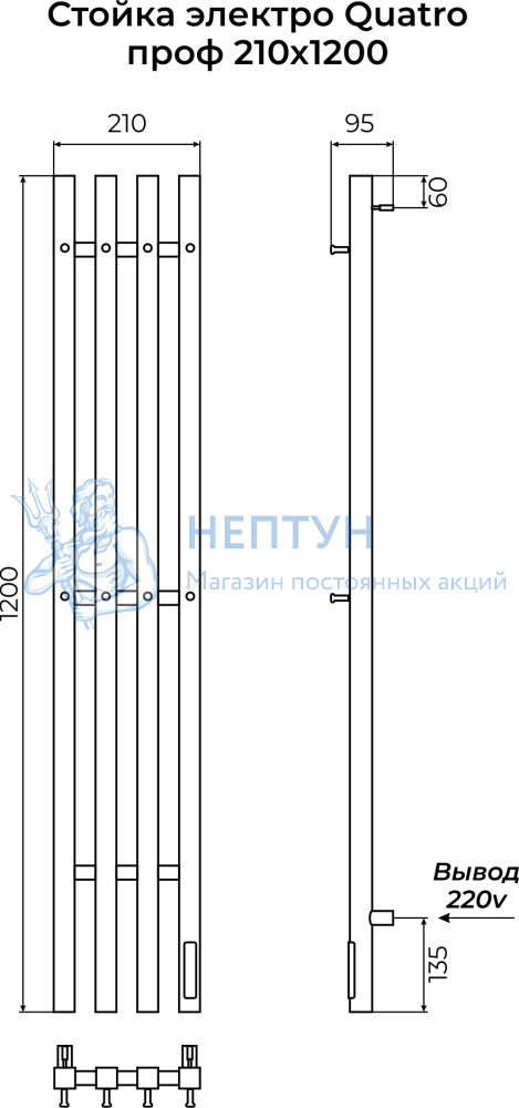 - Стойка электро QUATRO проф1200 Terminus нерж. 4670078561497