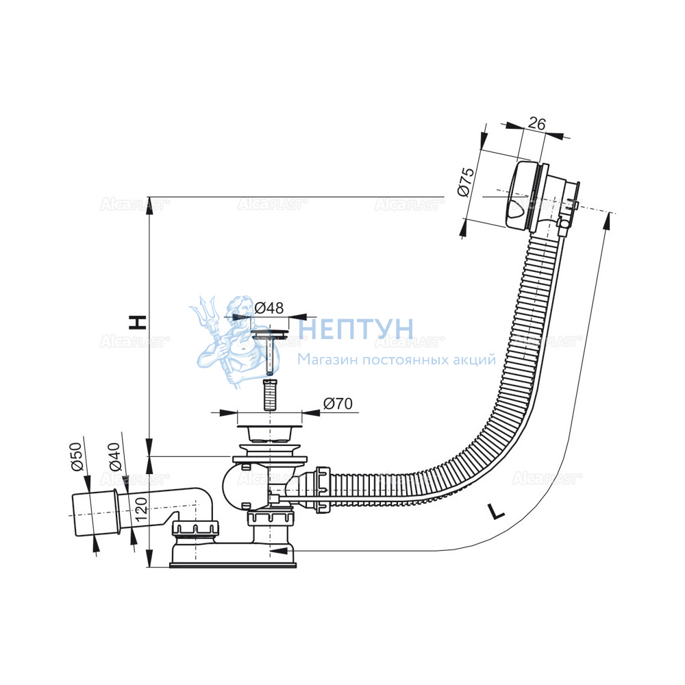 - Сифон для ванны AlcaPlast A51B