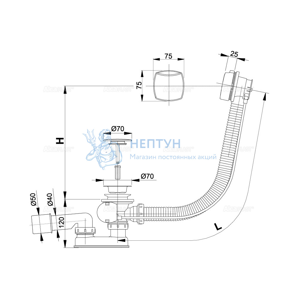 - Сифон для ванны AlcaPlast A51CRM