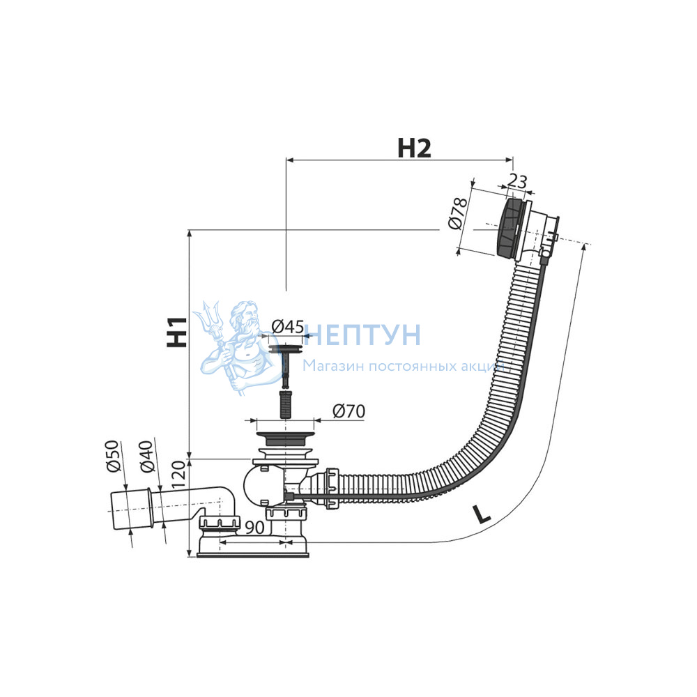 - Слив-перелив для ванны Alcaplast A55BLACK