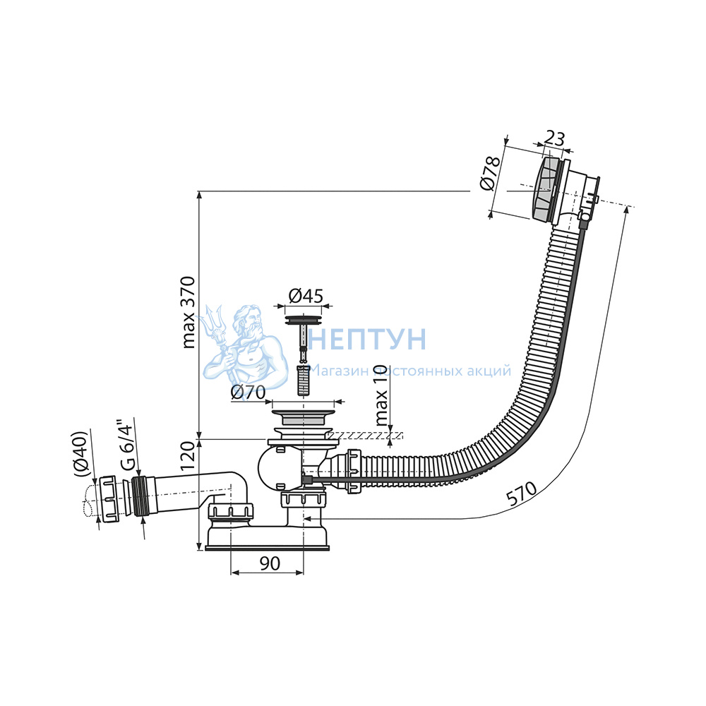 - Слив-перелив для ванны AlcaPlast A55K-RU-01