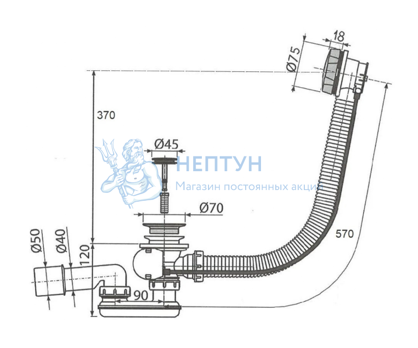 - Слив-перелив для ванны полуавтоматический Aquatek ST-0000128