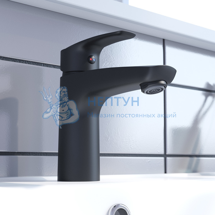 - Смеситель для умывальника, черный, Ray, IDDIS, RAYBL00i01