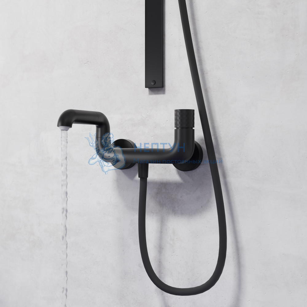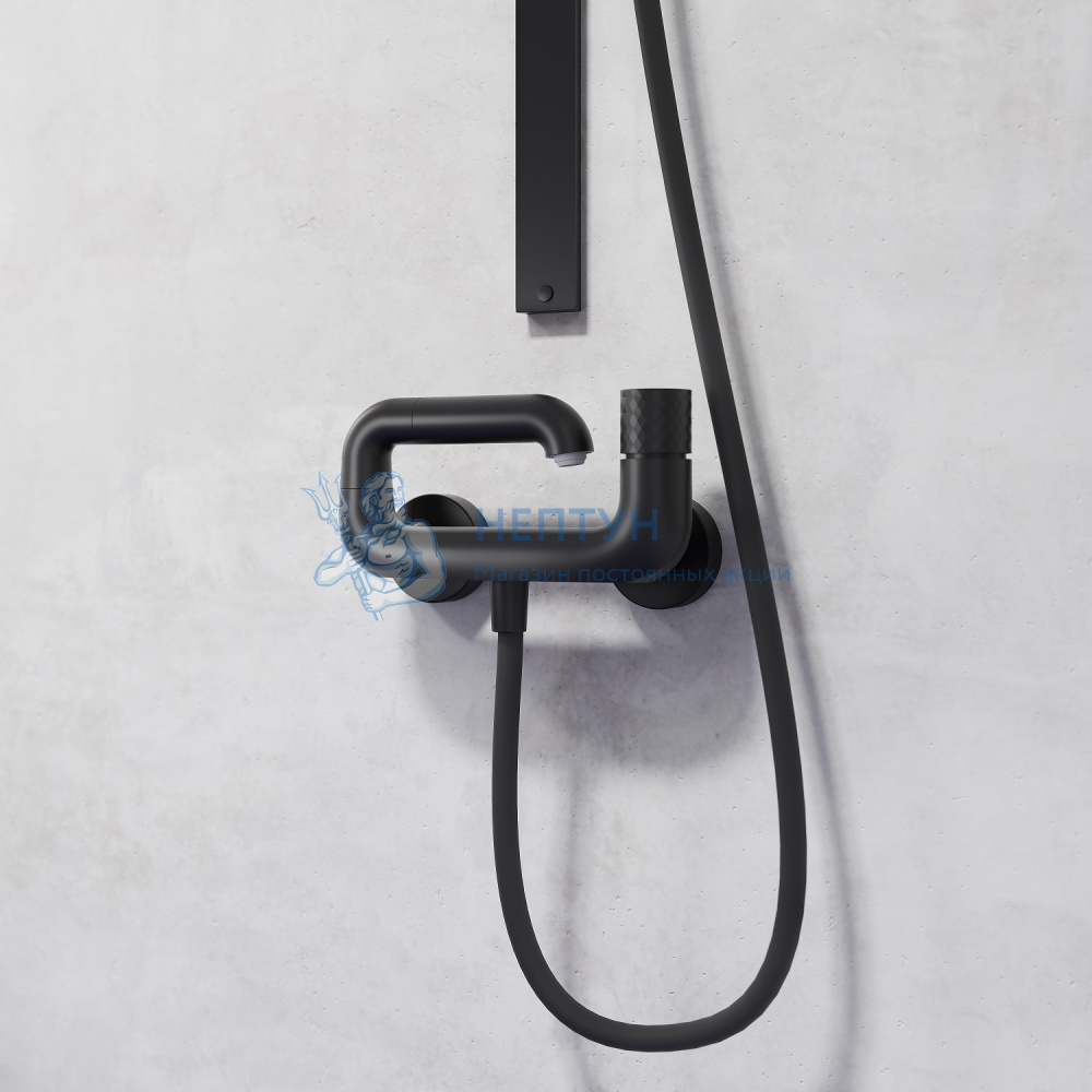 - Смеситель для ванны с управлением Push Control, черный матовый, Twist, IDDIS, TWIBLBTi02WA