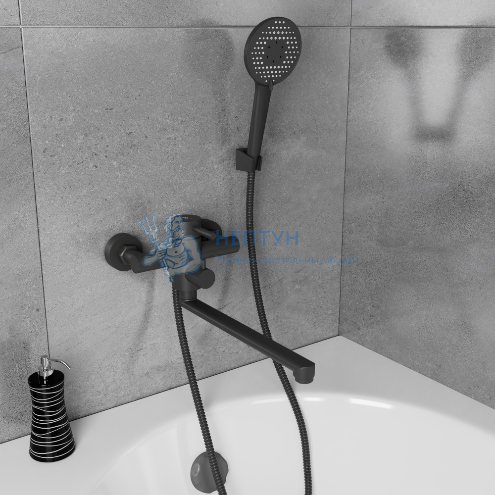 - Смеситель для ванны с длинным поворотным изливом RUSH Melos SUS1101-51Black черный