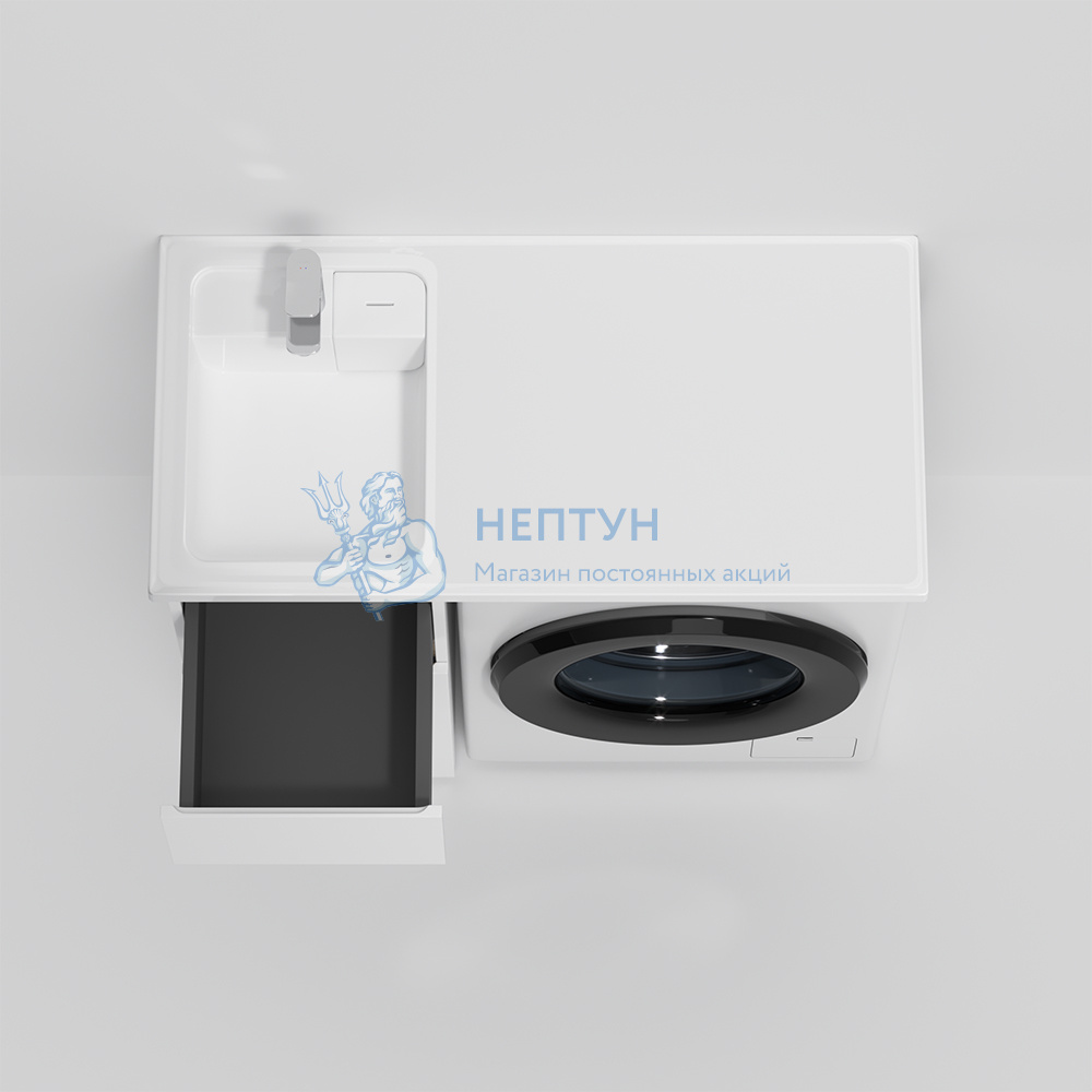 Внимание! Стоимость акционных товаров является окончательной, и не суммируется с другими акциями и скидками!Дизайнерская раковина из литьевого мрамора белоснежного цвета с бортиком скрытым сливом и съемной мыльницей. Раковина оснащена просторной столешницей на которой можно разместить косметические и гигиенические средства. Столешница защищает стиральную машину от повреждений и механических воздействий.