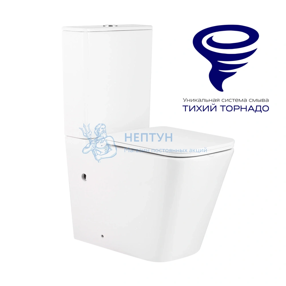Смыв "Тихий Торнадо":На 33% тише стандартных моделей. Эффективное использование воды: смыв 360° оставляет унитаз чистым, минимизируя бактерии и запахи.