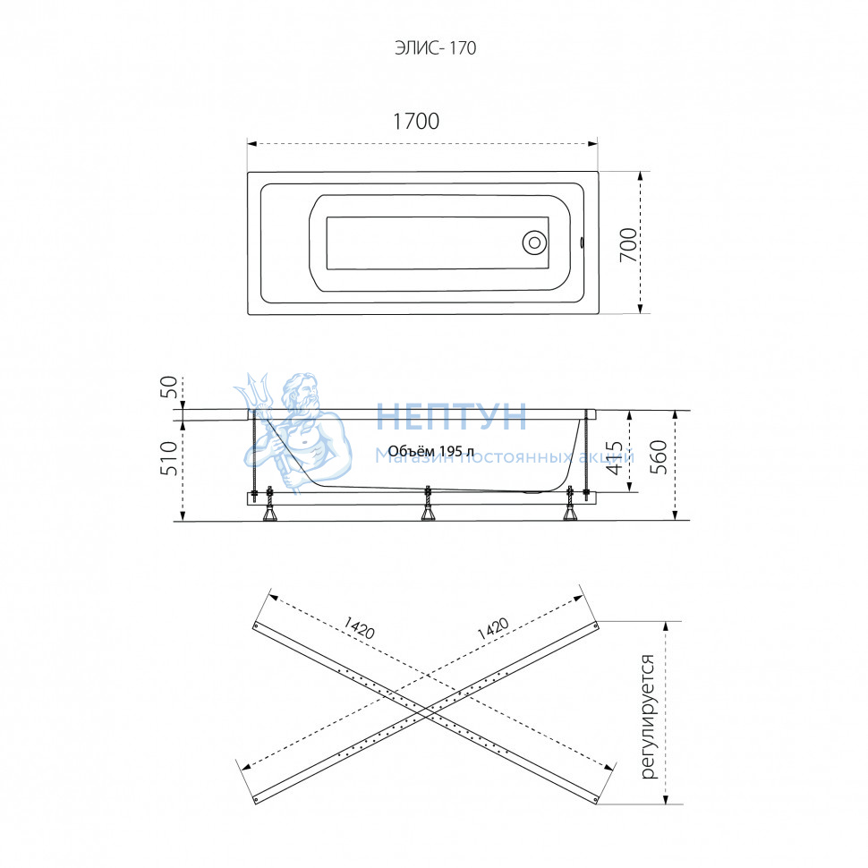 - Акриловая ванна Triton Элис 170x70 прямоугольная Щ0000066028