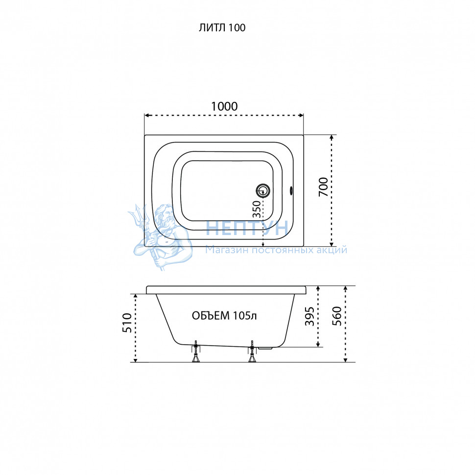 - Акриловая ванна Triton Литл 100x700 прямоугольная Щ0000066027