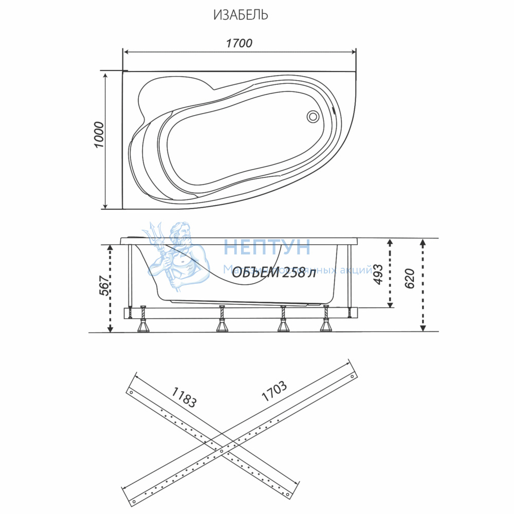 - Акриловая ванна Triton Изабель 170x100 асимметричная Щ0000048747