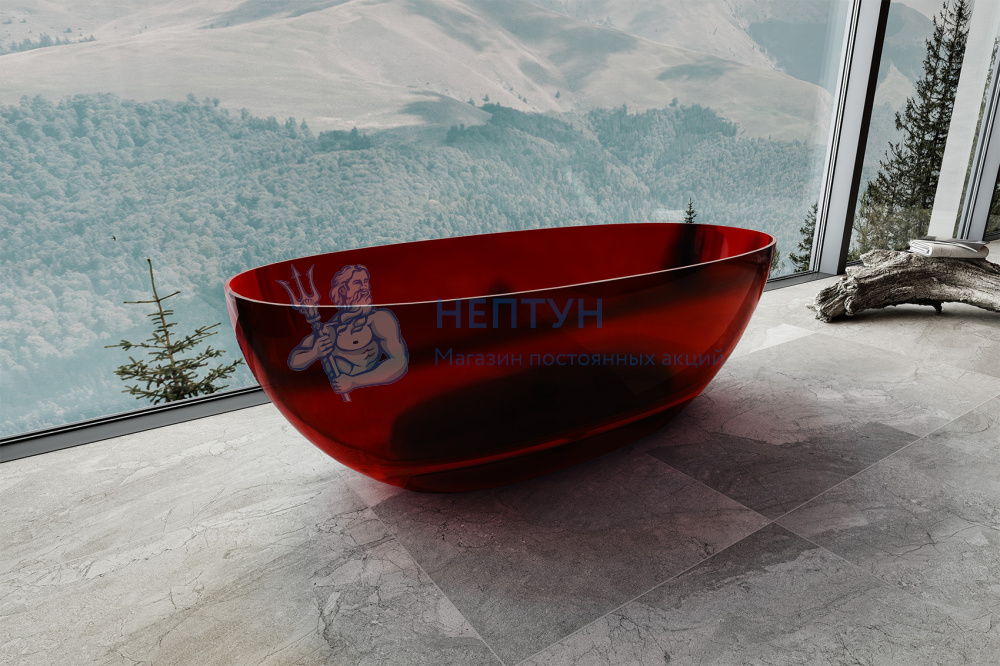 - Прозрачная ванна ABBER Kristall AT9703Rubin красная