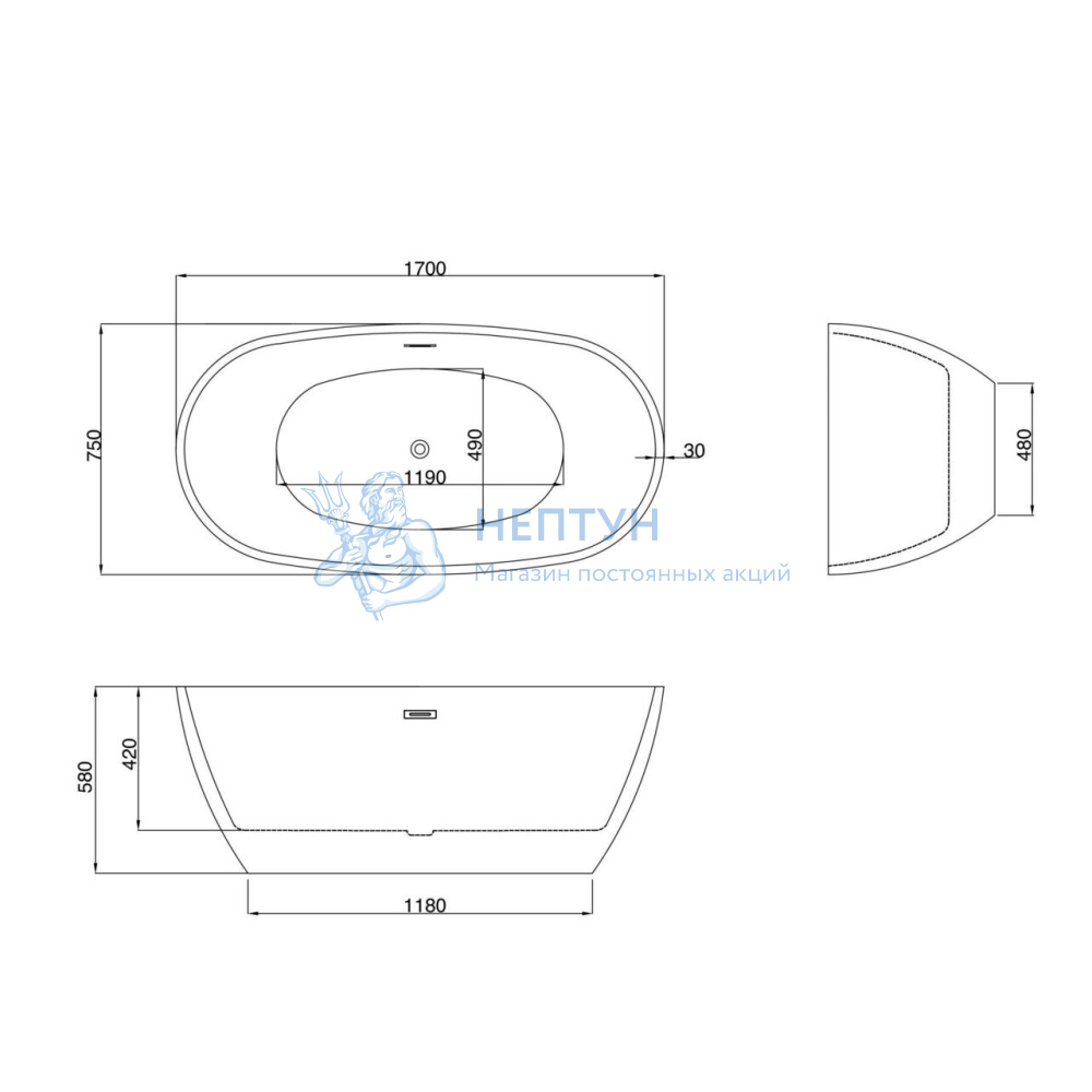 - Ванна отдельностоящая Grossman GR-1104 170x75