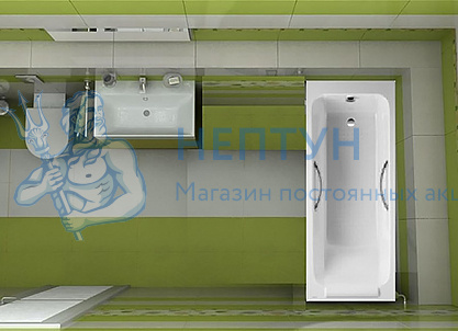 - Чугунная ванна 150х70 Jacob Delafon Parallel E2949-00 с отверстиями для ручек