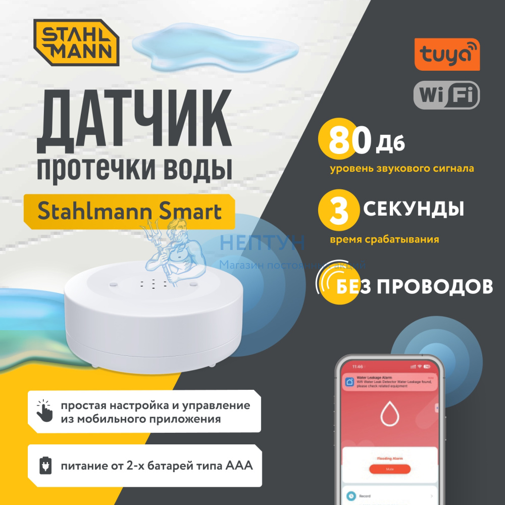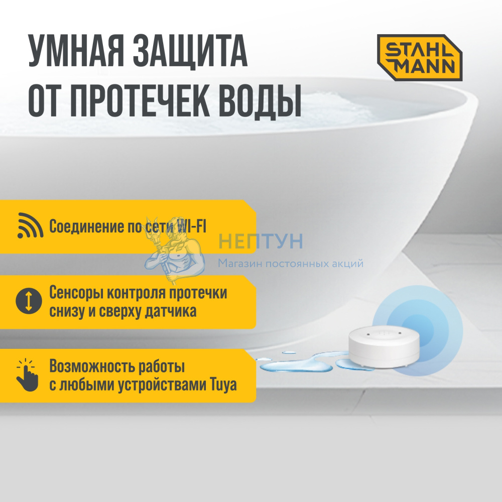 Внимание! Стоимость акционных товаров является окончательной, и не суммируется с другими акциями и скидками!Датчик протечки воды Stahlmann Smart предназначен для фиксации протечки воды и оповещения пользователя посредством звукового сигнала, а также удаленного оповещения в приложении для смартфонов Smart Life (Tuya) в любой точке мира.