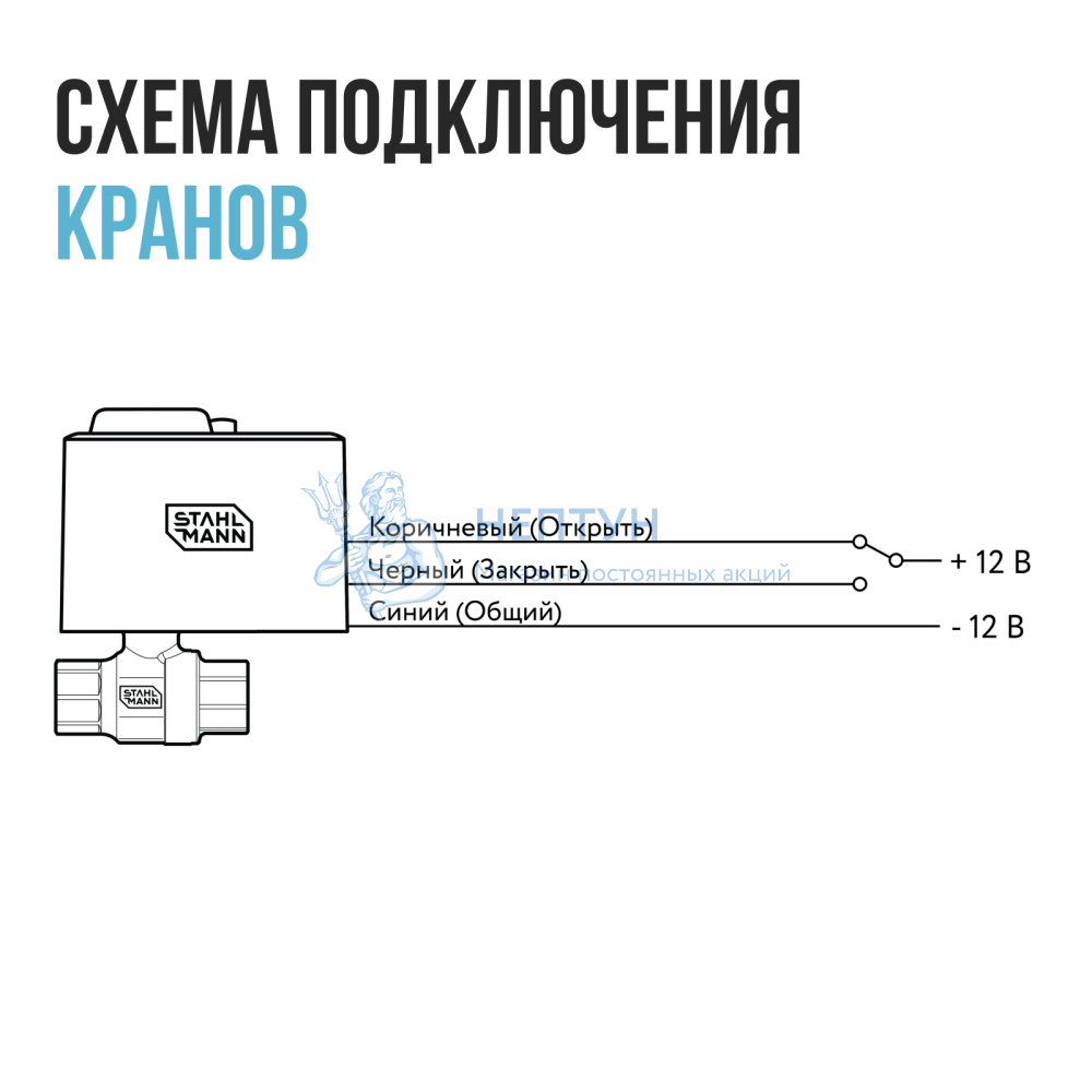 - Кран шаровой с электроприводом Stahlmann 3/4F 12В