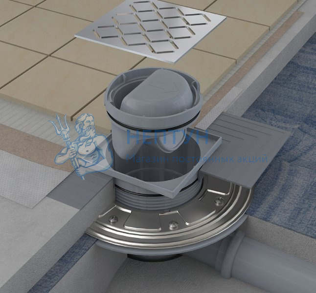 Подходит для душевых уголков, ванных комнат и технических помещений. Монтажная высота 104 мм. Нержавеющий фланец и гидроизоляция.