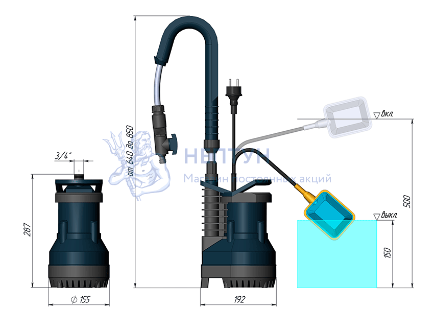 <li>управление: внешний поплавковый выключатель;</li>
