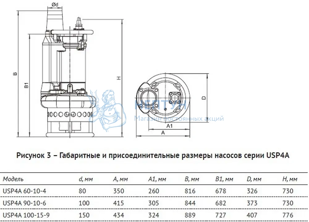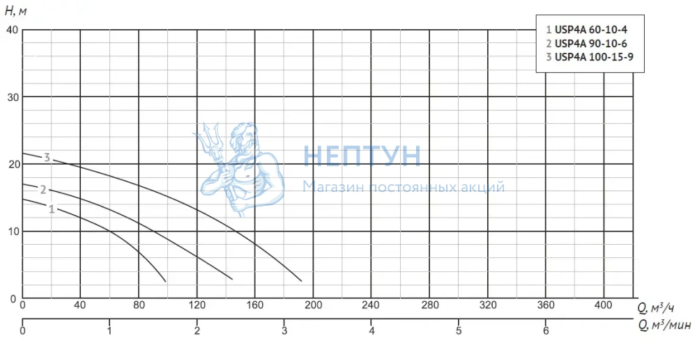 *Примечание – Насосы серии USP4A поставляются с 4-х полосным асинхронным двигателем.