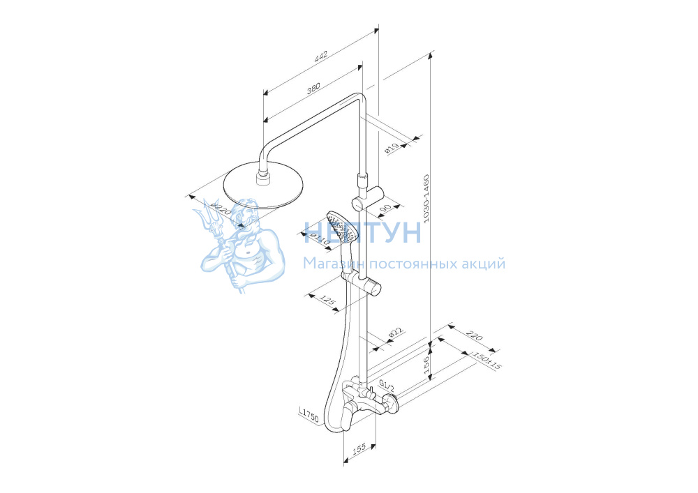 Диаметр душевых леек (верхний душ 220 мм и ручной душ 110 мм) позволит ощутить преимущества тропического душа даже в стандартной ванной тогда как увеличенная длина шланга 1750 мм обеспечит свободу движений во время принятия душа. Продуманные детали для удобства использования: телескопическая поворотная штанга регулируется по высоте в диапазоне от 1030 до 1460 мм обеспечивая комфорт для людей любого роста.